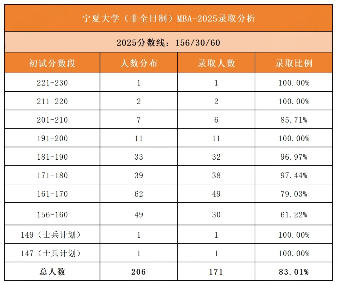 【宁夏MBA录取分析】宁夏大学2025年MBA复试录取情况分析
