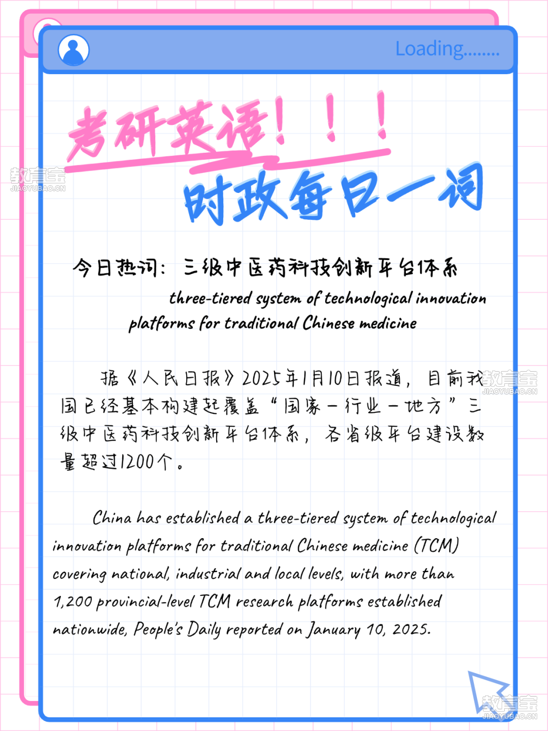 据《人民日报》2025年1月10日报道,目前我国已经基本构建起覆盖“国家—行业—地方”三级中医药科技创新平台体系,各省级平台建设数量超过1200个。