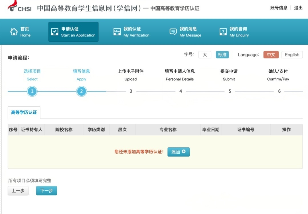 5. 按要求填写个人信息,进入“申请认证”页面,上传包括学历证书、身份证等材料,确认信息无误后“提交申请”