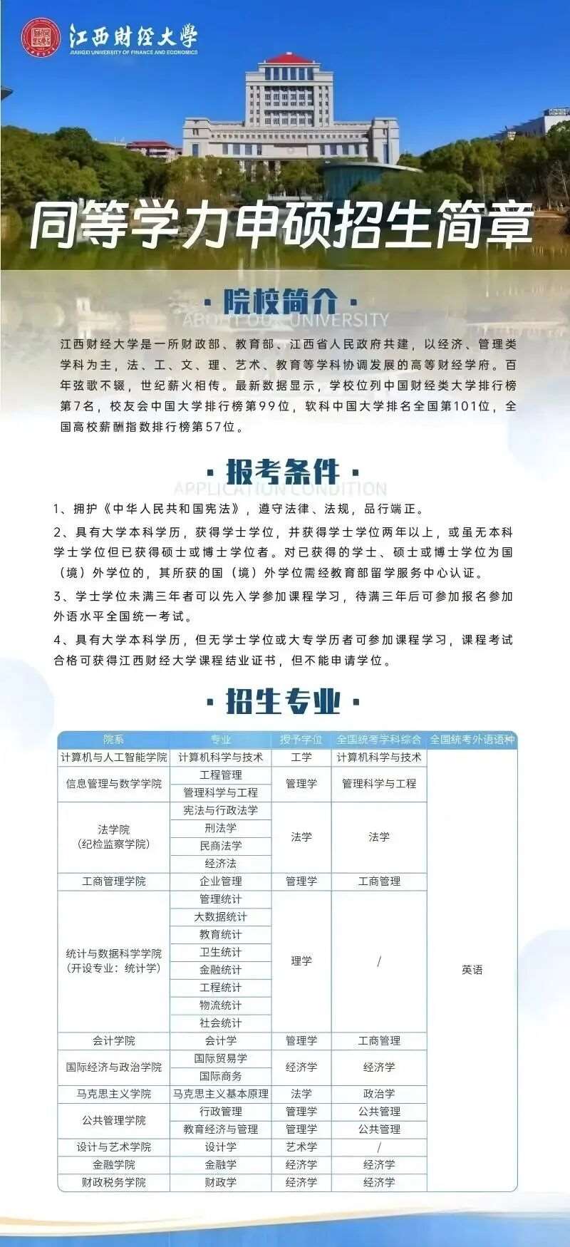 江西财经大学作为财经类学校(中国财经类大学排名第7),同等学力申硕新增国际贸易学、国际商务专业,毕业授予经济学硕士学位!