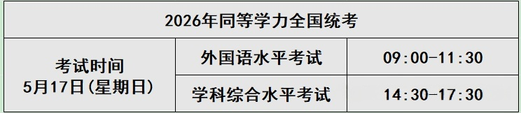2026年同等学力人员申请硕士学位全国统一考试报名将于3月16日正式开始(报名时间:3月16日-26日)。考试时间为:5月17日(星期日:外国语水平考试时间:9:00~11:30;综合水平考试时间:14:30~17:30)。