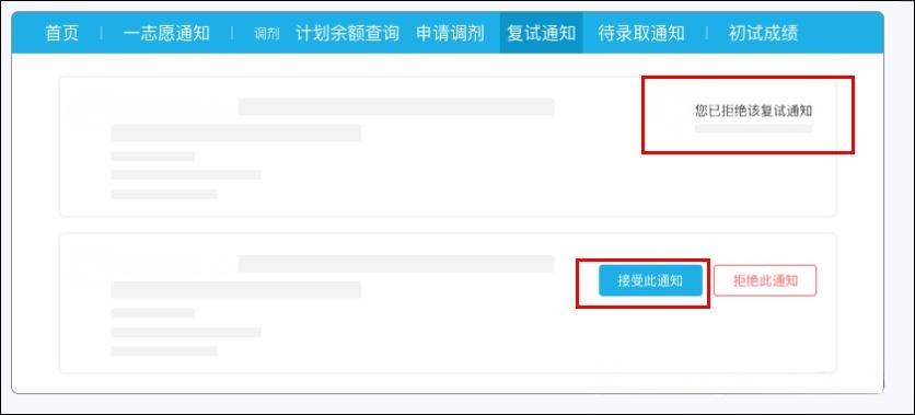 提交调剂志愿后,大家要及时登录调剂系统查看是否接到复试通知,并在招生单位规定时间内通过调剂系统确认回复,按招生单位要求参加复试。复试没有通过的考生仍可继续填报其他调剂志愿。