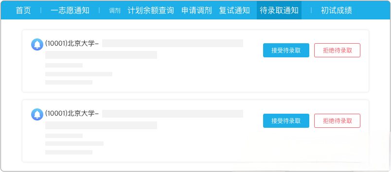 复试通过后,招生单位将通过调剂系统给考生发送待录取通知,接到“待录取通知”的考生应在招生单位规定时间内登录调剂系统进行确认,否则招生单位可取消待录取通知。