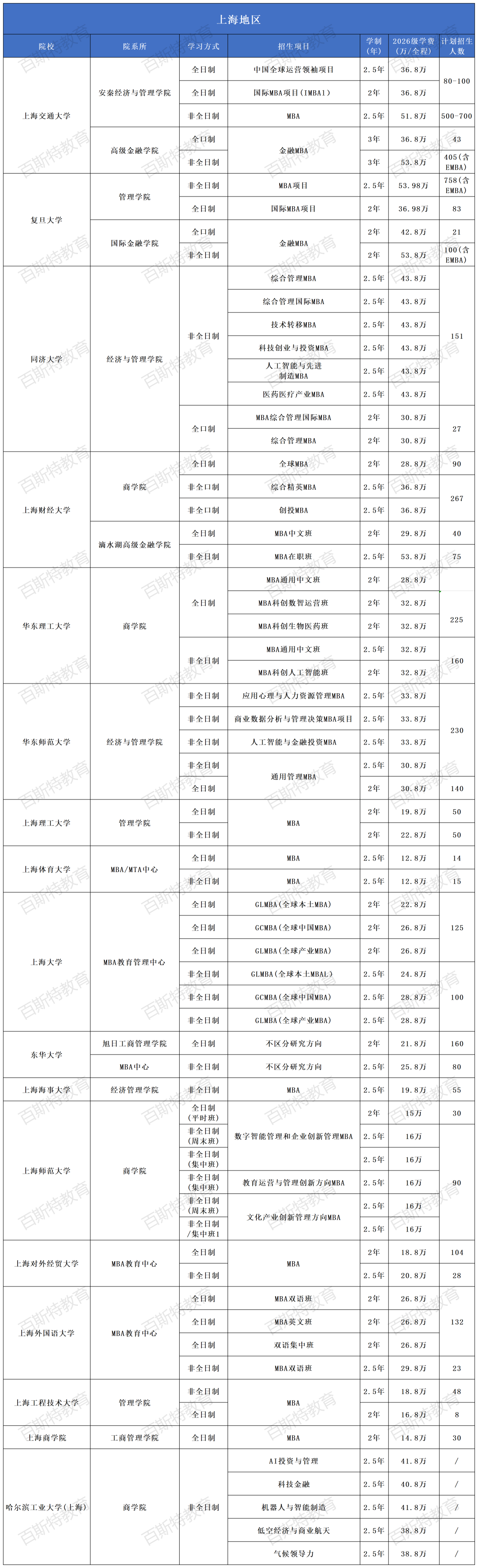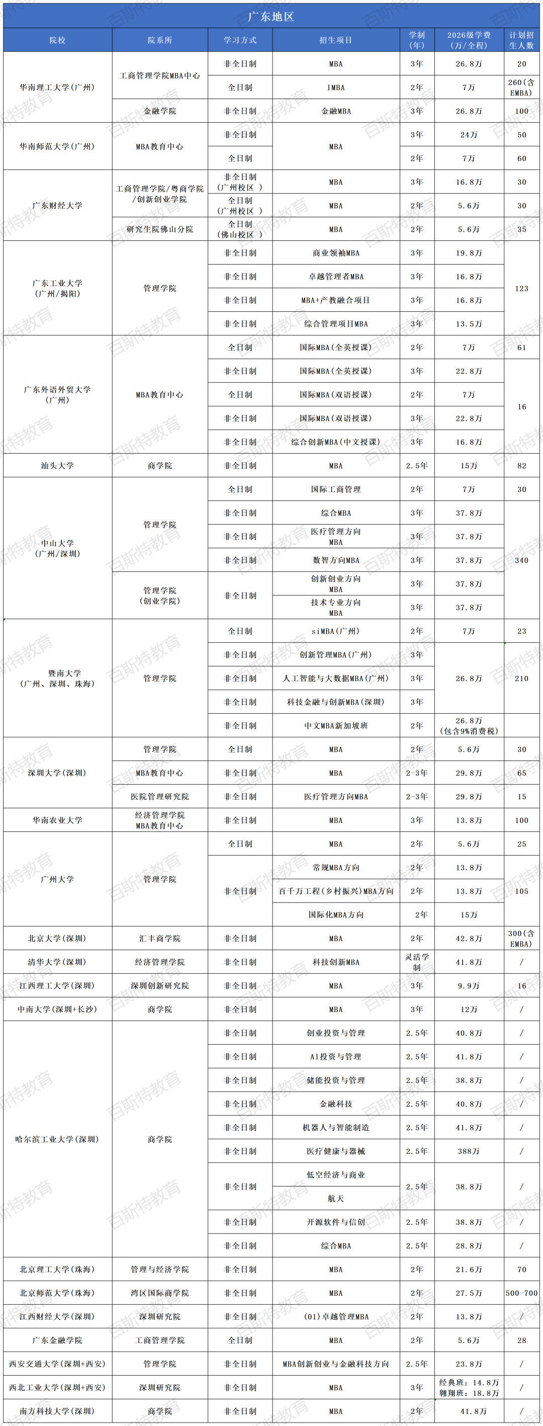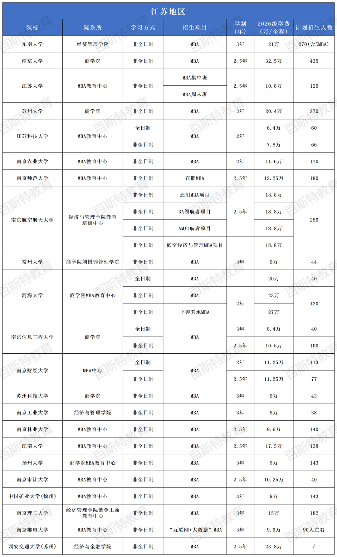 2027年MBA招生呈现三大趋势:① 科技赋能方向井喷——AI、数字金融、科技创业等新方向已成各校标配;② 学费持续分化——头部院校依然坚挺,但10万以下的高性价比项目依然丰富;③ 跨区域办学加速——越来越多985院校在深圳、苏州等经济活跃城市设立异地教学点,考生选择更加灵活。