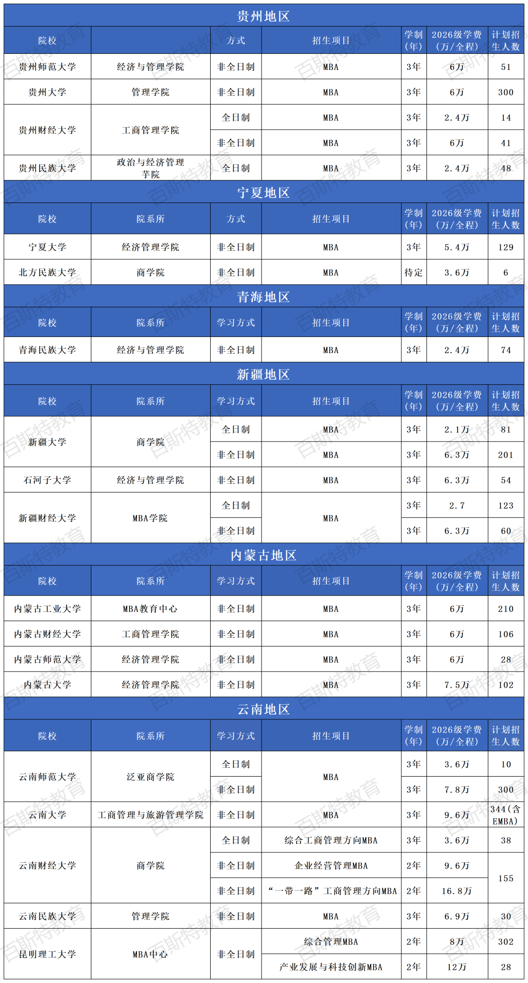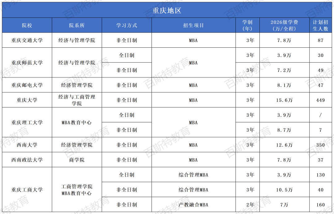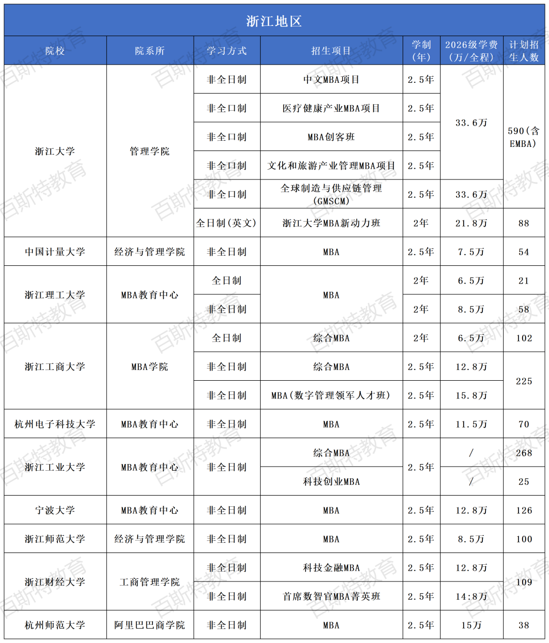2027年MBA招生呈现三大趋势:① 科技赋能方向井喷——AI、数字金融、科技创业等新方向已成各校标配;② 学费持续分化——头部院校依然坚挺,但10万以下的高性价比项目依然丰富;③ 跨区域办学加速——越来越多985院校在深圳、苏州等经济活跃城市设立异地教学点,考生选择更加灵活。